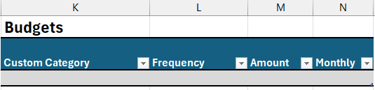 - Ensure your category names in the Budgets table exactly match those in the Custom_Cat table.