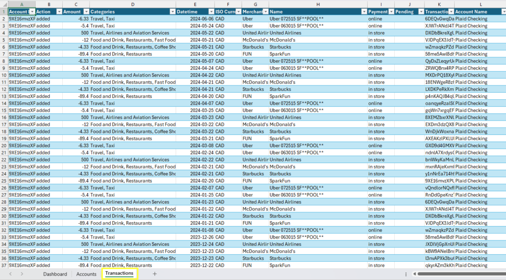 ExMint organizes your financial data across several sheets in your Excel workbook. Understanding these sheets is key to making the most of the add-in.